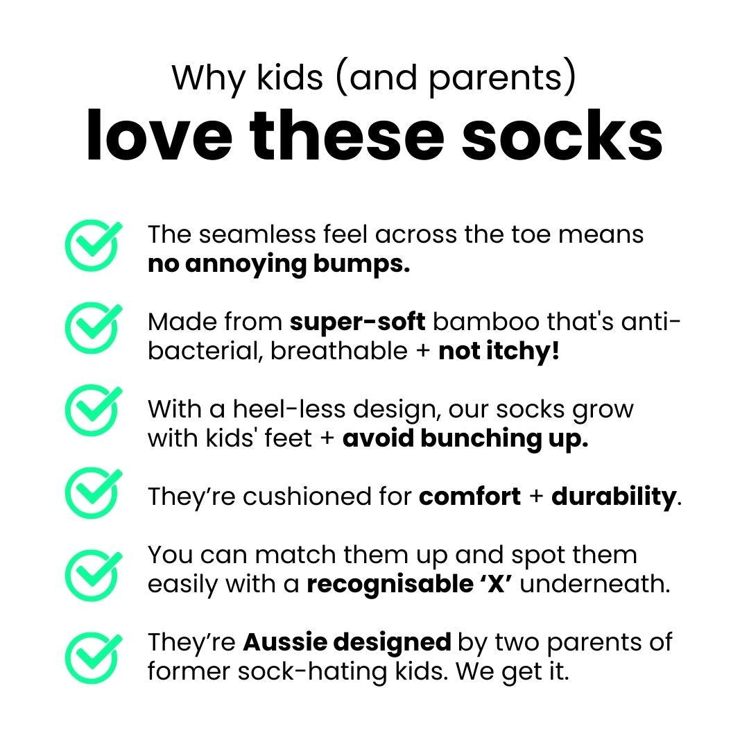 Say hello to easier mornings with the softest, seamless feel, bamboo socks that kids actually want to wear.